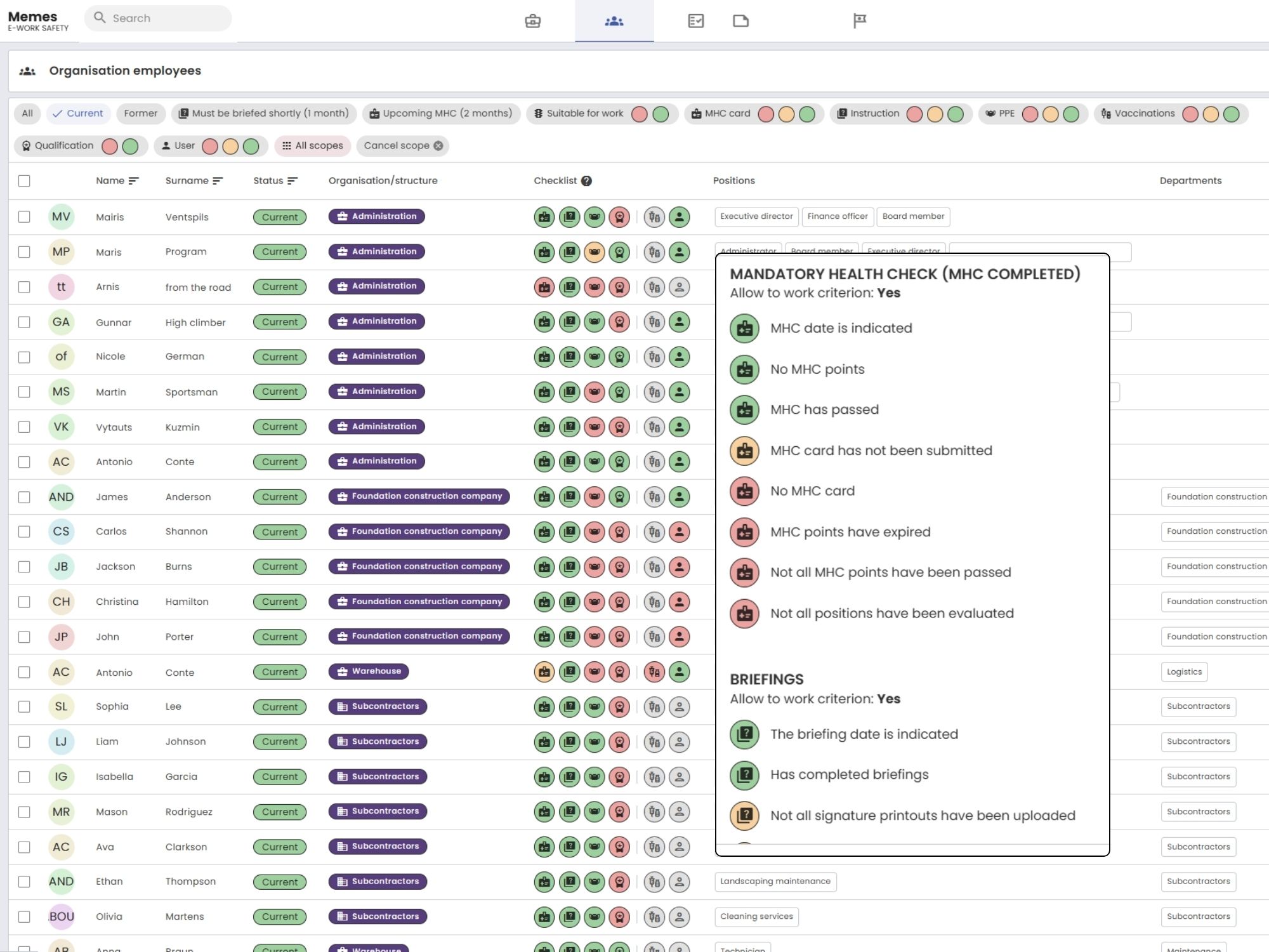 Monitor employee compliance with occupational safety using a simple traffic light system. Identify the overall compliance level of the structure.