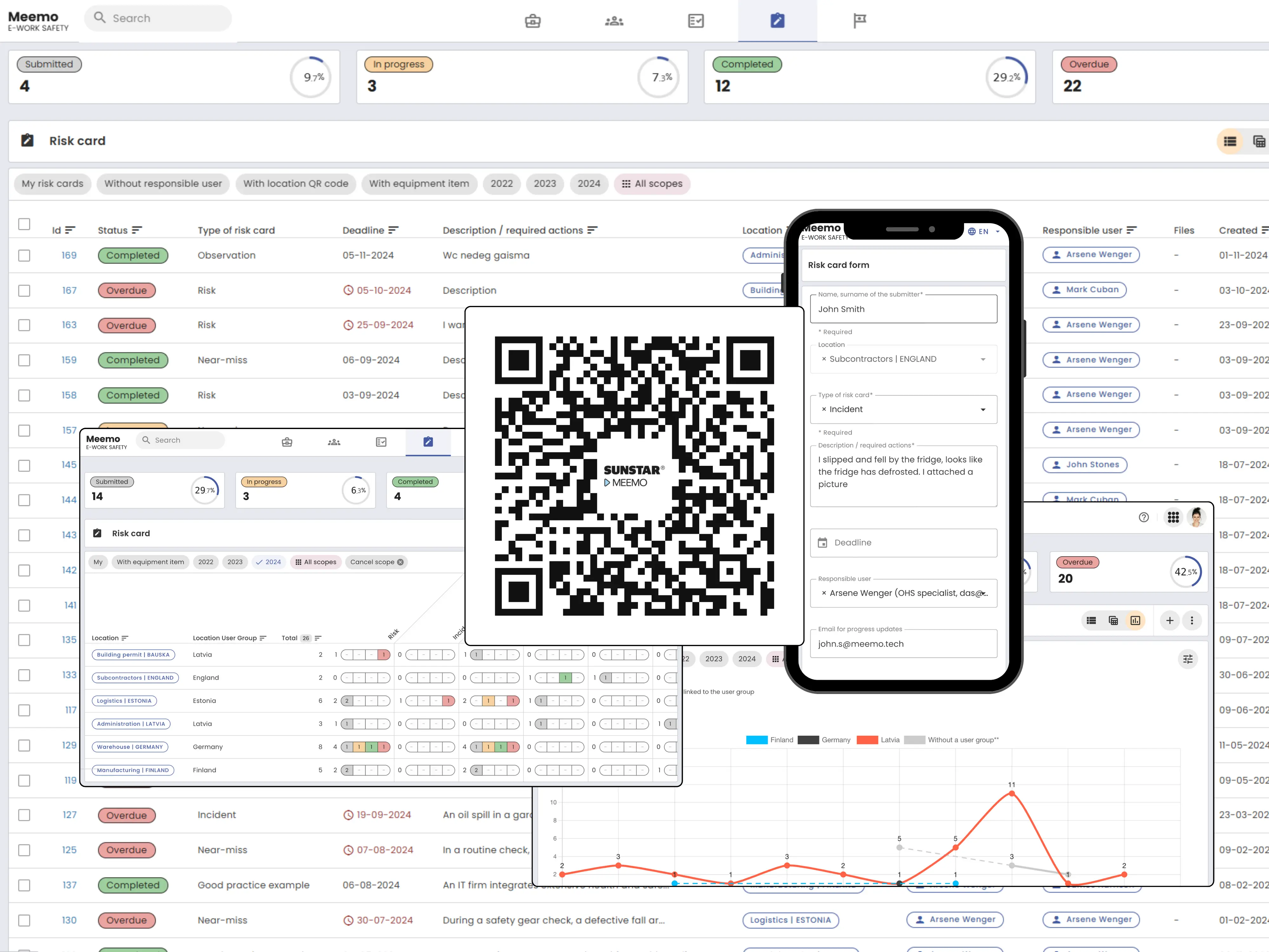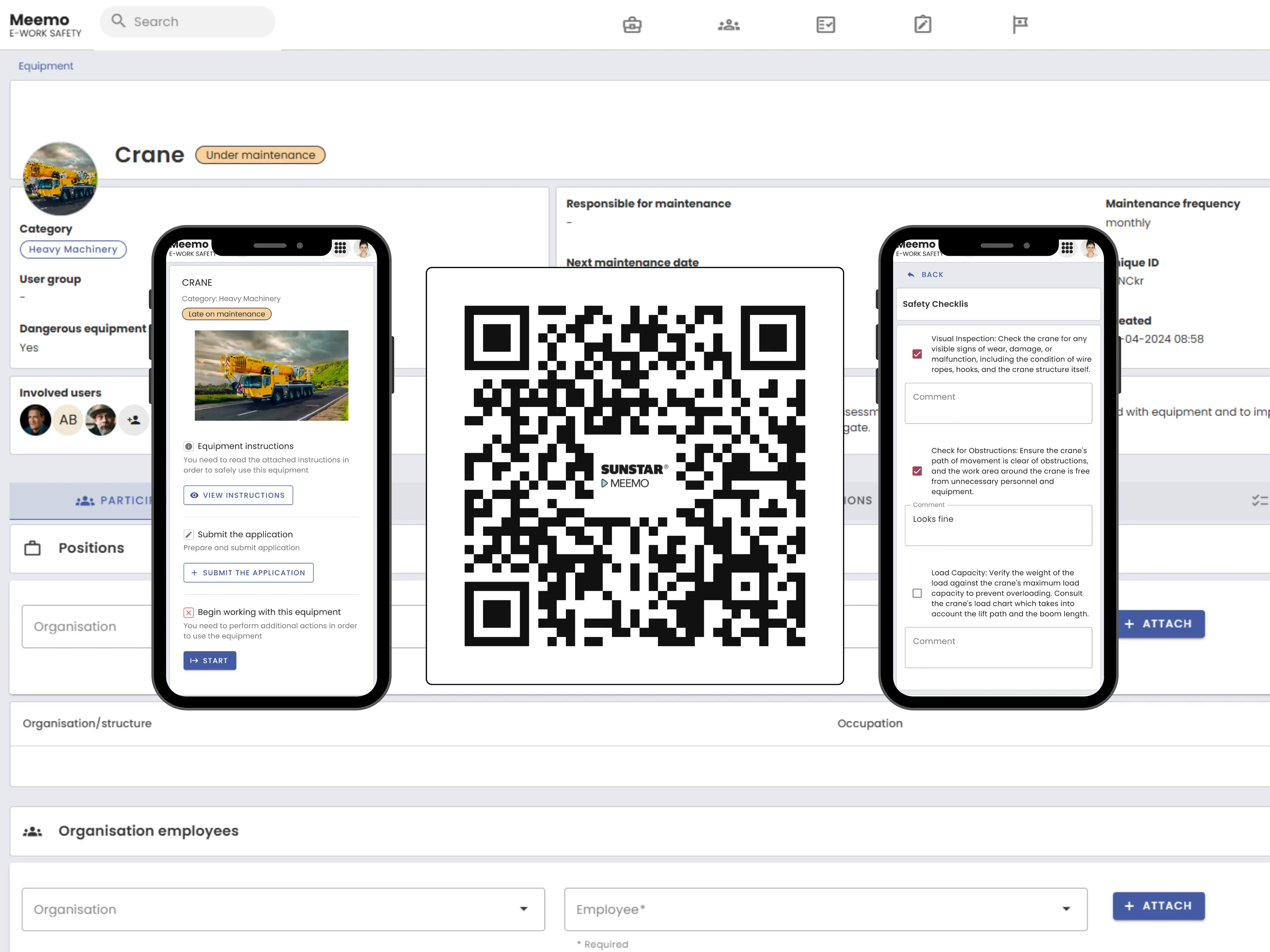 Report hazardous situations using QR codes available in the work environment, with requests processed centrally.